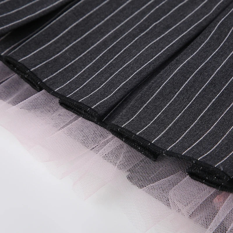 Meet "Chromy," your ticket to playful elegance! Embrace the allure of the Striped Pleated Mini Skirt – a tantalizing blend of cotton, polyester, and spandex that promises comfort and style in every sway. Whether it's the chic A-line silhouette, the flirtatious above-the-knee length, or the eye-catching striped pattern adorned with a charming bow, Chromy is designed to captivate. Elevate your wardrobe and seize the spotlight – because with Chromy, fashion has never been this irresistible. Don't just follow trends; set them with Chromy, the skirt that turns heads and steals hearts.