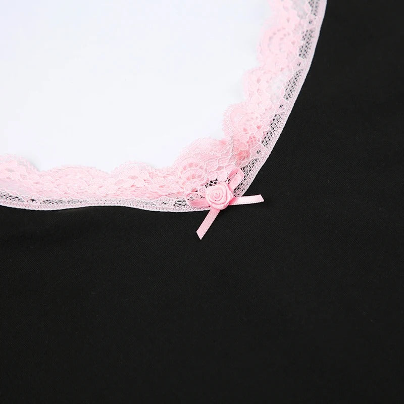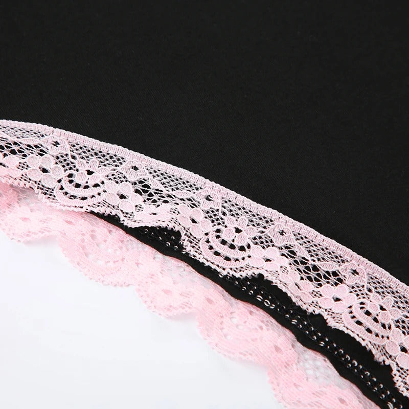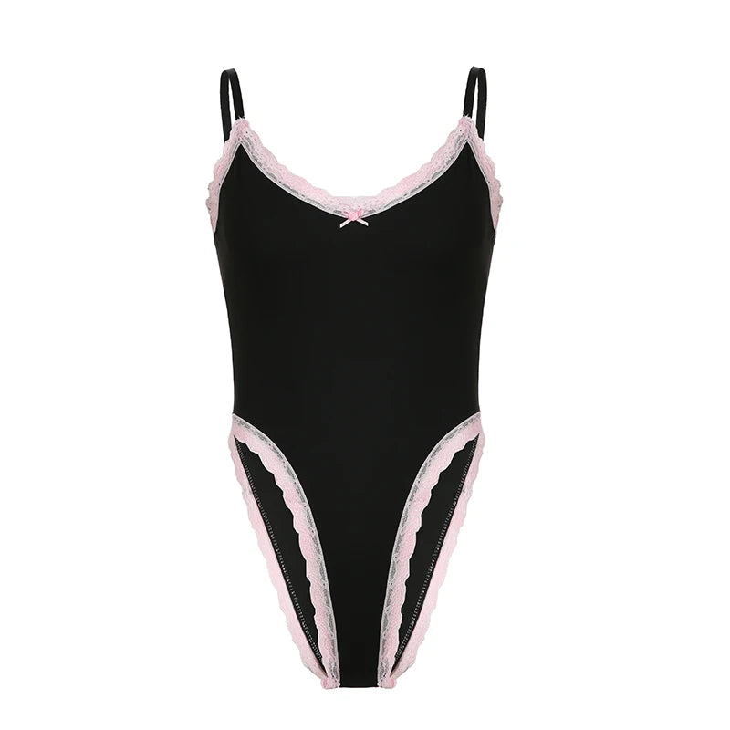 Crafted with delicate lace accents and a unique patchwork design, this bodysuit offers a touch of playful elegance.