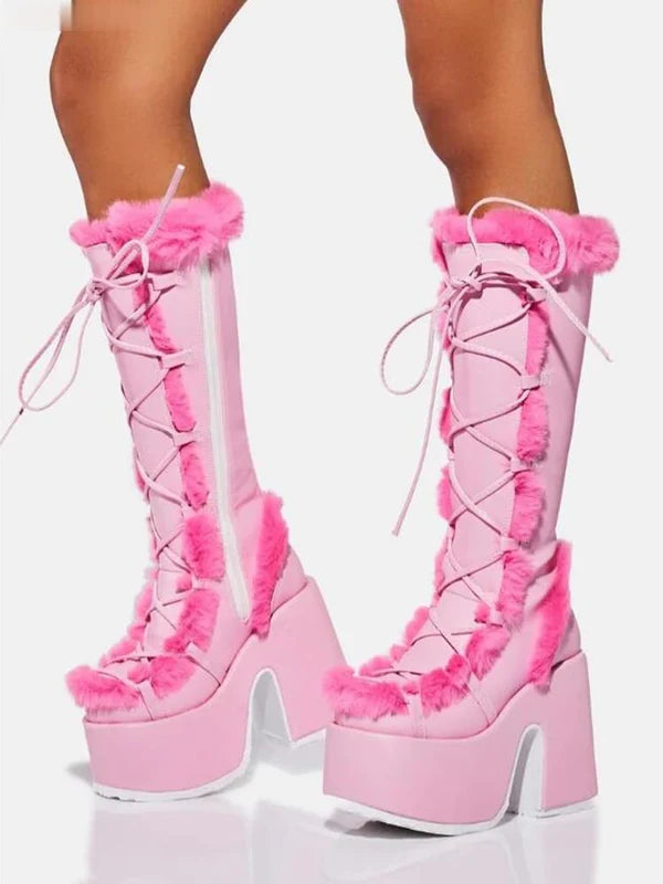 Stay warm and stylish with Furvana, the ultimate snow boots for winter! Designed with plush suede and a cozy lining, these mid-calf boots feature a durable rubber outsole and platform heels for added height and non-slip traction. The cross-tied laces add a chic touch, while the round toe and waterproof design ensure comfort and practicality. Perfect for embracing the season with elegance and warmth.