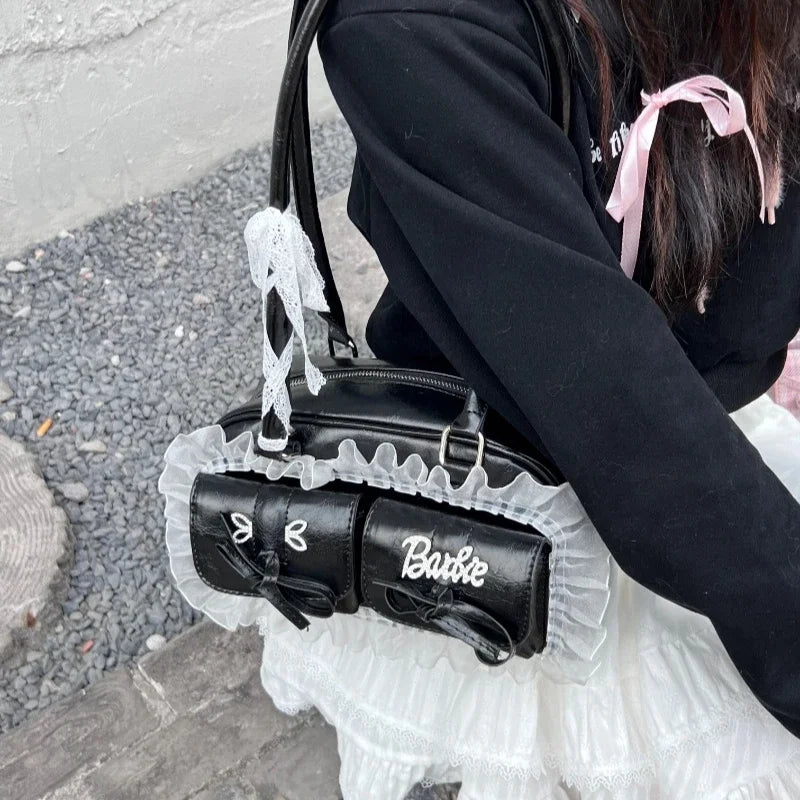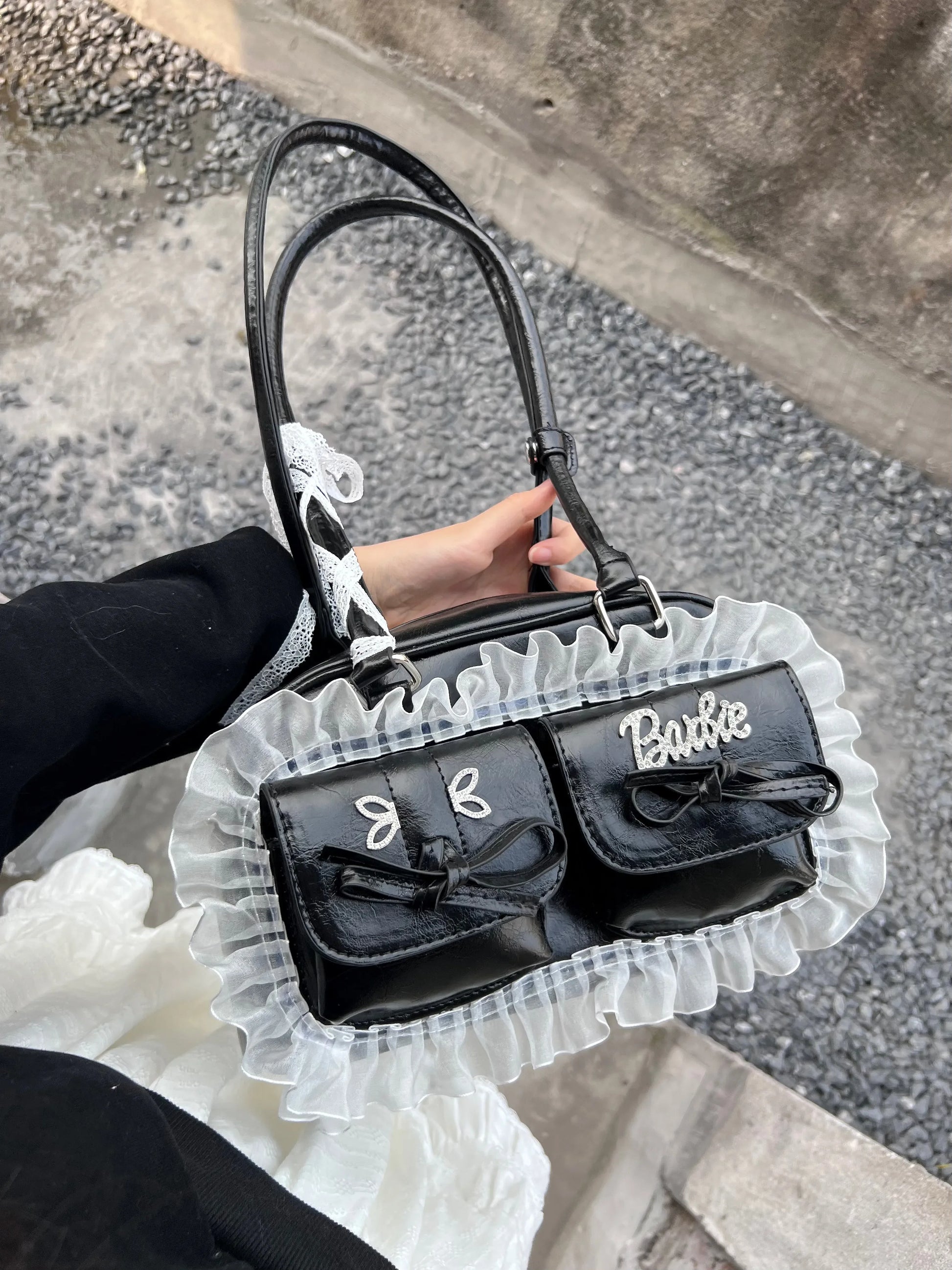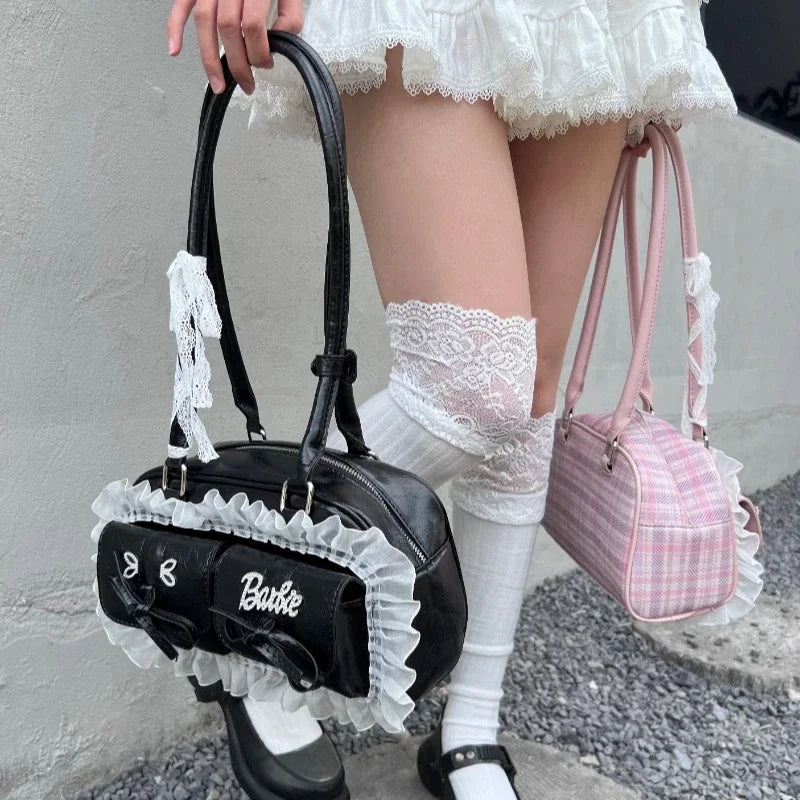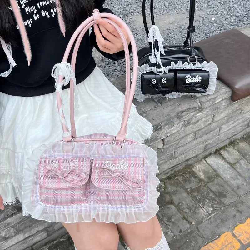 The Ruffelle Shoulder Bag blends feminine elegance with modern functionality. Designed with a soft PU leather exterior and charming plaid pattern, it features delicate lace detailing that adds a touch of sophistication.