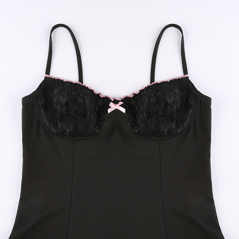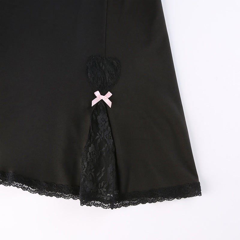 This A-line, strap-style dress is a playful blend of Y2K, Lolita, and Kawaii, with a touch of Fairycore whimsy. Sleeveless for sunny vibes and available in Pink and Black, it's a pullover treasure adorned with delicate lace.