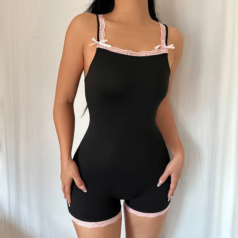 The solid color design is elevated by a delicate bow detail, adding a sweet yet stylish accent. Made from a durable blend of polyester and spandex, it's perfect for making a statement, whether you're out for a casual day or dressing up for a night out. Embrace the Y2K vibe with the effortlessly chic Reina Romper!