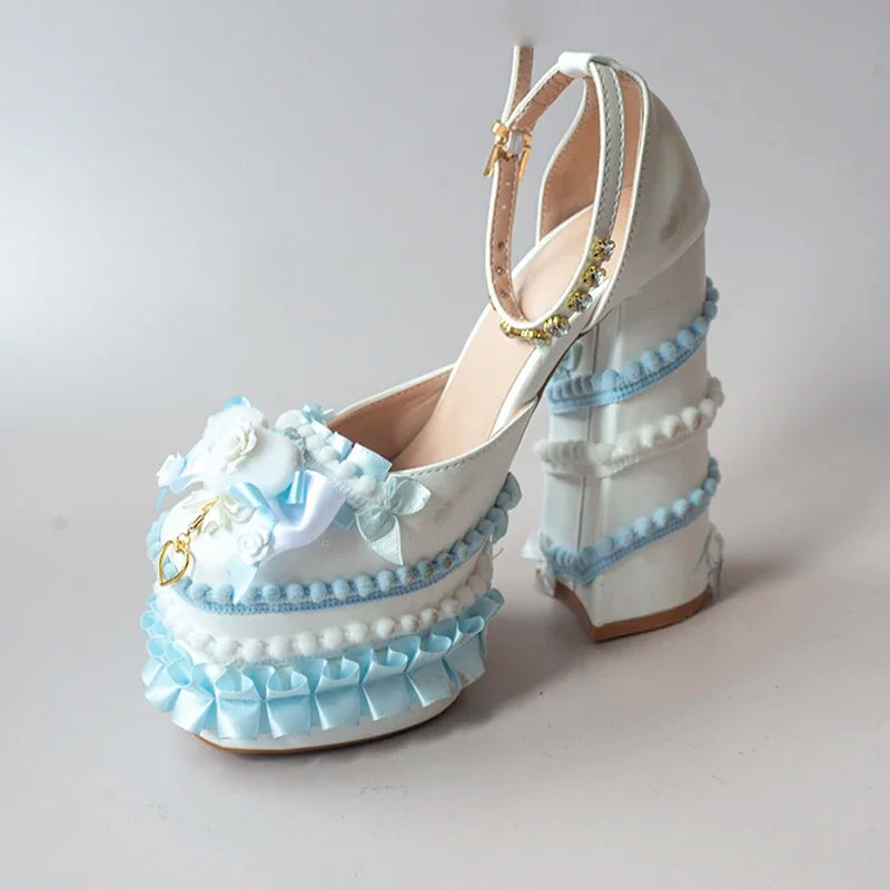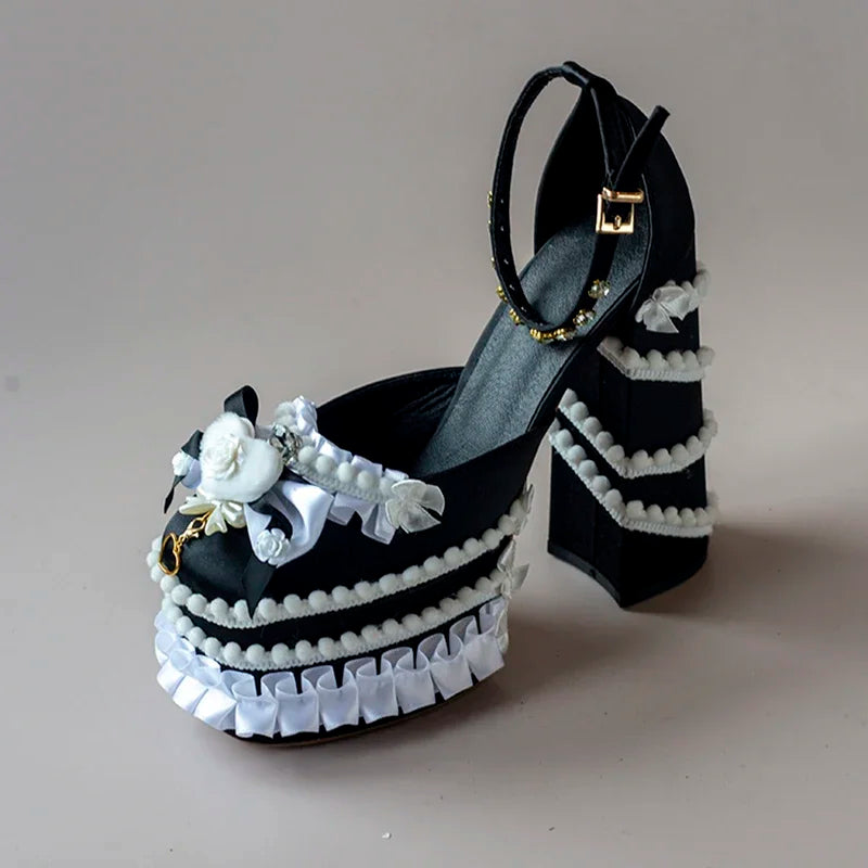 Elevate your look with the Rufflette Heels, blending whimsical charm with bold style. Featuring super high square heels, a modern square toe, and delicate ruffle details, these slingback pumps are perfect for parties or Lolita-inspired outfits. Crafted from durable PU with a rubber outsole, they offer both comfort and stability. Add a touch of magic to your wardrobe with these enchanting heels!