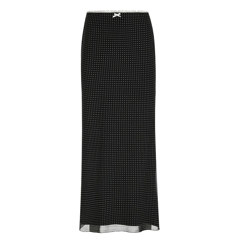 Step into effortless elegance with Twinkle, a dreamy ankle-length mesh skirt adorned with delicate polka dots and a dainty bow detail. Its soft silhouette, lace trim, and breathable polyester fabric create a flattering slim fit—perfect for summer streetwear or a romantic evening look.