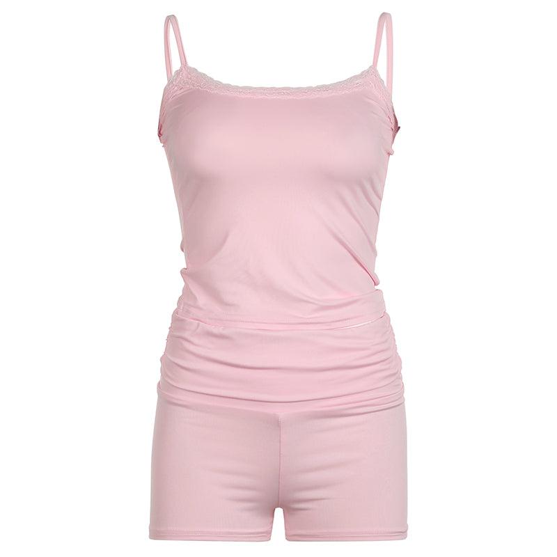 Velinia is your new go-to set for soft sporty charm with a flirtatious twist. This strapless two-piece outfit features a cropped lace-trim top and matching high-waisted shorts, crafted in a soft, stretchy knit for a figure-hugging fit. Designed for movement and made for moments, Velinia blends casual comfort with coquette elegance perfect for summer strolls, lounging in style, or catching attention wherever you go.
